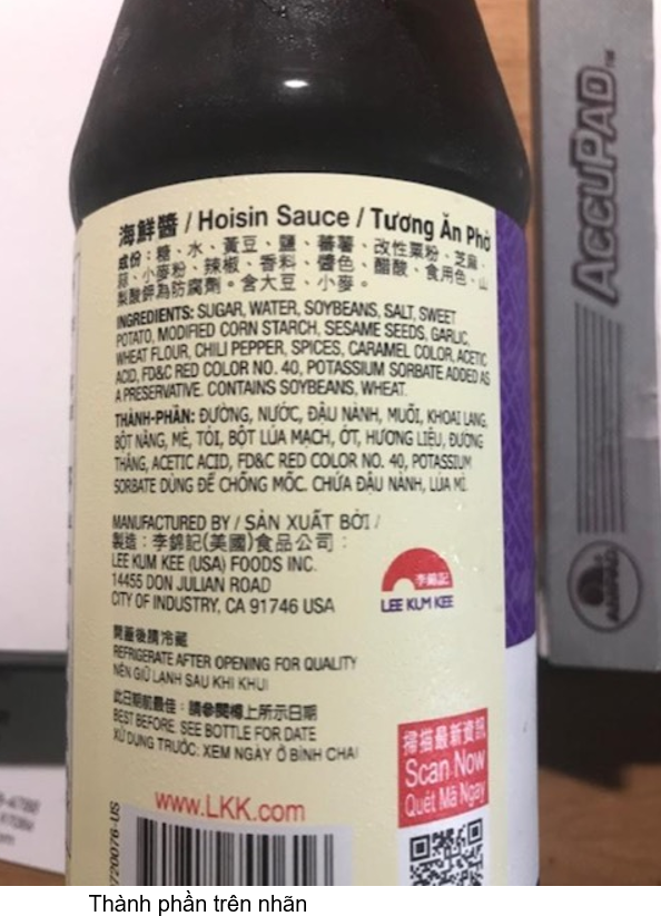 ..Lee-kum-kee hoisin sauce ghi tiếng Việt trên nhãn là Tương ăn phở: