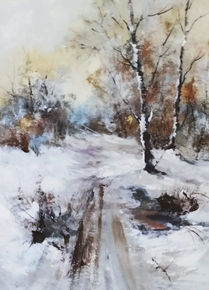Zimowy pejzaż -tempera Polska. Post by Anna Pawłowska. Source Arts.