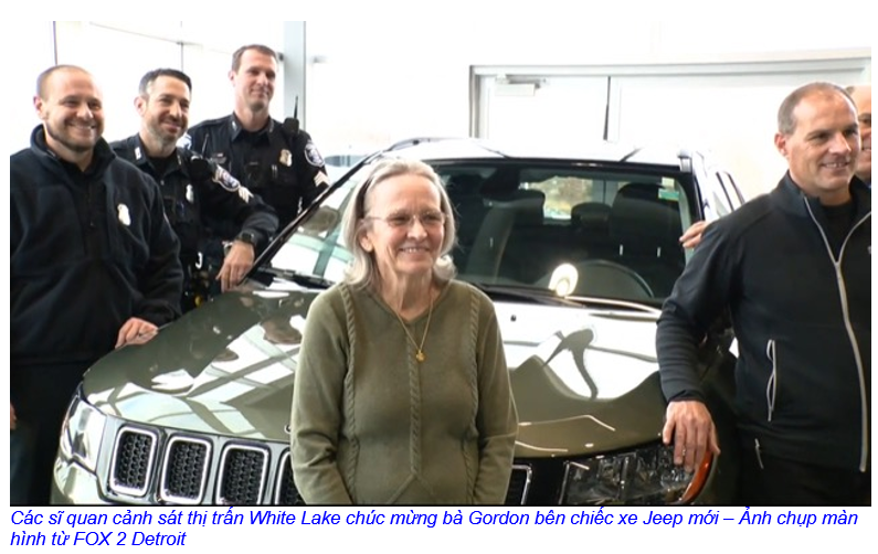 Mới đây, một cộng đồng ở thị trấn White Lake, hạt Oakland (tiểu bang Michigan) đã gởi tặng bà Dianne Gordon một chiếc xe Jeep mới toanh sau khi biết bà đã trả lại 15 ngàn đô la tiền mặt, mà bà nhặt được ở một bãi xe của một trạm xăng.