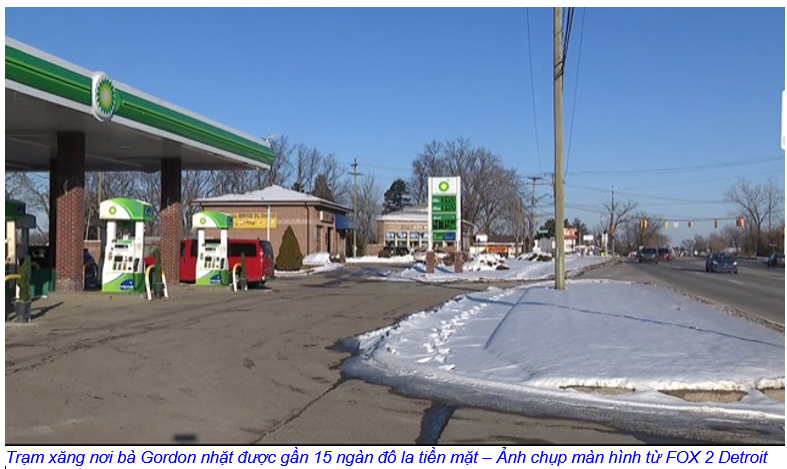 Theo đài FOX2 Detroit, vào tháng trước, trên đường đi làm, bà Gordon ghé trạm xăng BP để mua vài gói snack (thức ăn vặt), bà thấy một chiếc túi nhựa nằm lăn lóc dưới đất. Bà nói: