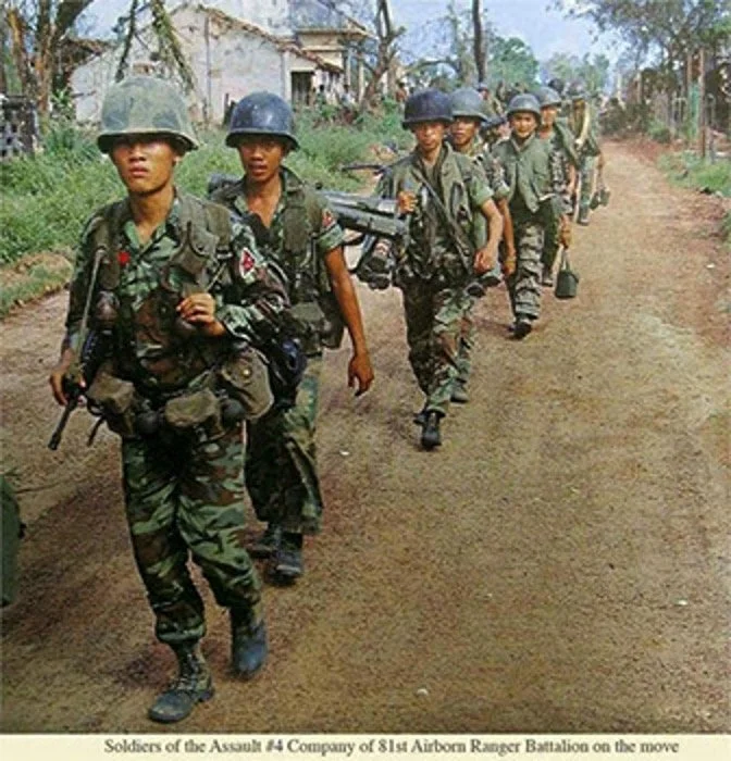 Hình trích từ một tạp chí Mỹ, phần chú thích viết : Binh sĩ Đại Đội 4 Xung Kích thuộc Liên Đoàn 81 Biệt Cách Dù lúc đang di hành. Người đi đầu trong ảnh là MĐ Ngô Nhựt Tân, hiện nay là nhà sư Huệ Quang.